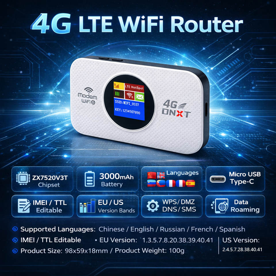 Router 4G DNXT con Tarjeta SIM, Wifi6, 300Mbps, Internet Móvil, Wifi WPS, Pantalla LCD, Router 4G de Bolsillo con 3000mAh, Tipo-C, USB para Viajes