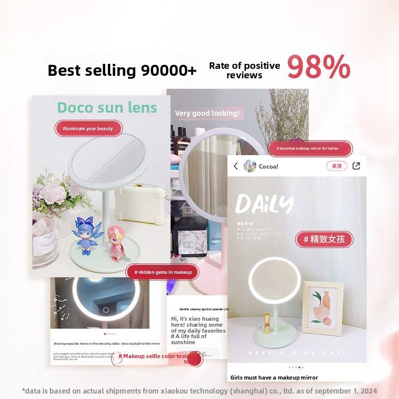 Espejo de Maquillaje Inteligente LED Iluminado DOCO LAB HD con Rotación de 360° y Control Táctil, Material ABS, Modelo M003