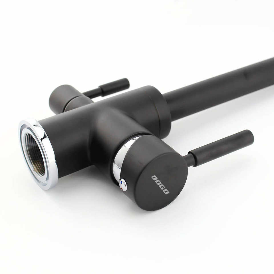 DOGO Filtro de Agua 3 en 1, Mezclador de 3 Vías de Latón Macizo Negro Mate, Grifo de Cocina para Sistema de Ósmosis Inversa