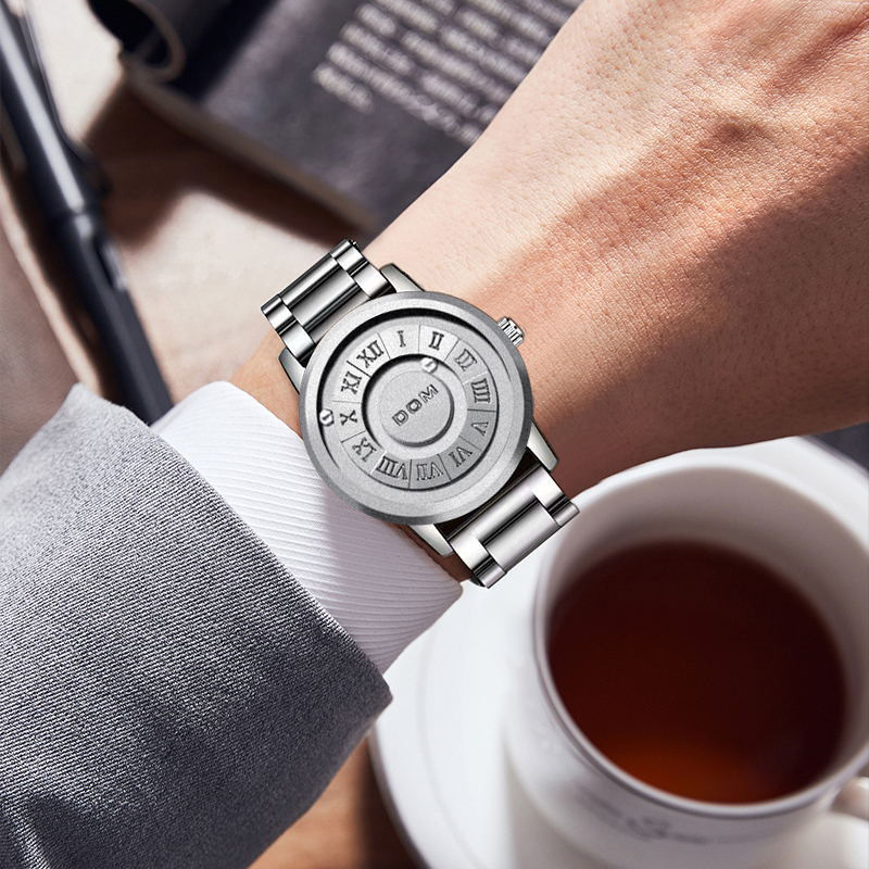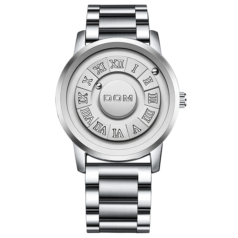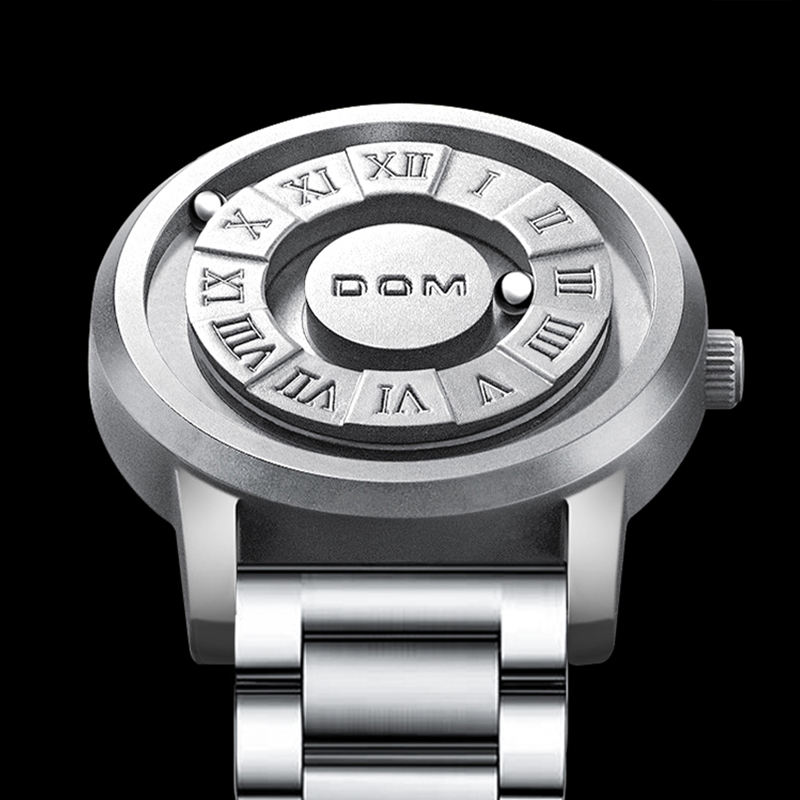 Reloj de cuarzo para hombre DOM 1345D, números romanos, esfera magnética, correa de acero giratoria, resistente al agua, elegante, moderno, para hombre