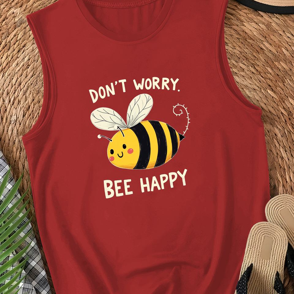 Chaleco de Punto Informal para Mujer DON'T WORRY BEE HAPPY, de Spandex/Poliéster, con Cuello Redondo y Logotipo Frontal