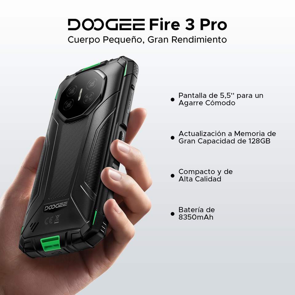 Teléfono Inteligente DOOGEE Fire3 Pro con Android 15, Resistente a Golpes, Pantalla HD+ de 5.5'', 4GB+128GB, IP68, NFC, Batería de 8350mAh, Octa Core, LCD, Doble SIM, Carga Rápida