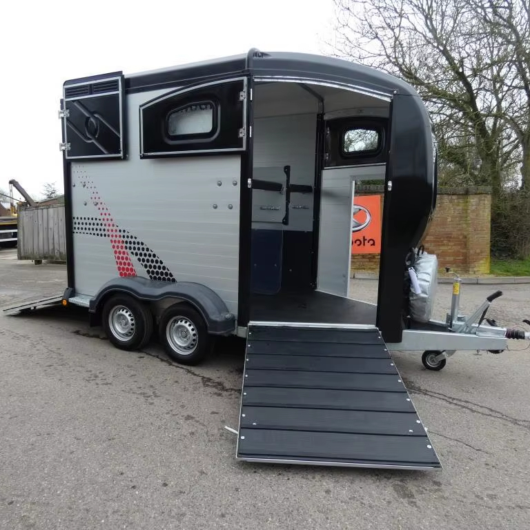 Remolque de eje de neumático 12R22.5 certificado DOT, nuevo semirremolque de pared lateral de acero para ganado o caballos, remolque de camión Horsebox