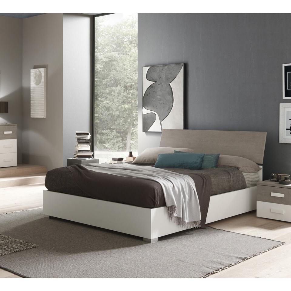 Cama doble con acabado en fresno blanco y contenedor de cemento