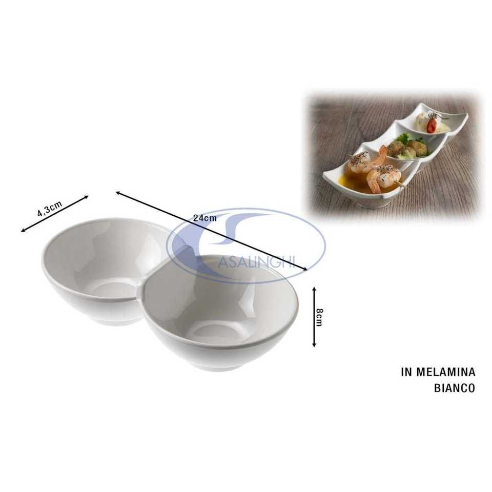 Tazón Doble de Melamina Blanca CM.24X8X4,3h - Vajilla y Decoración para Fiestas, Aperitivos y Más