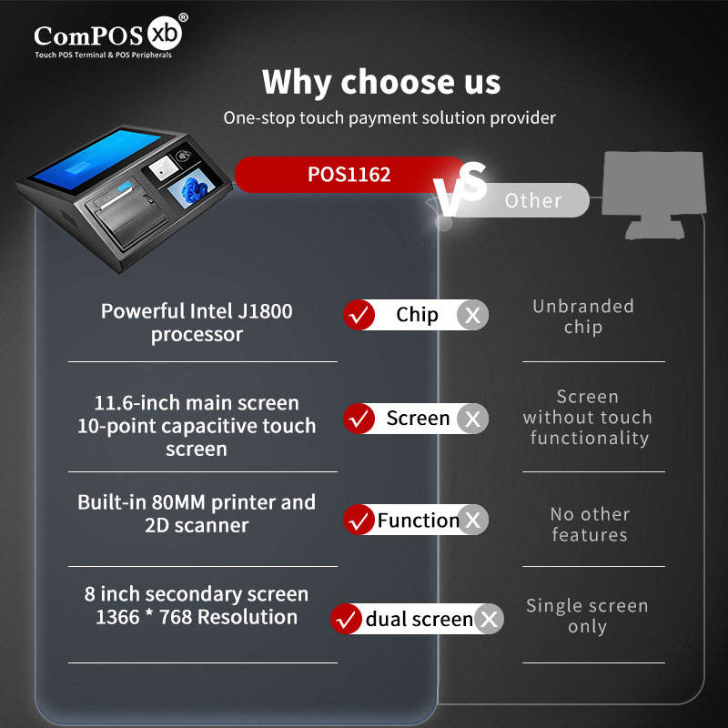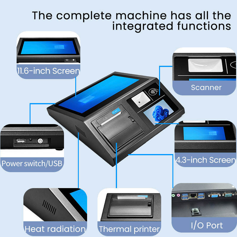 DP1162 Sistema POS con Pantalla Táctil Capacitiva de 11.6 Pulgadas + Pantalla LCD de 4.3 Pulgadas, Caja Registradora, Bluetooth 5.2, 4+128GB, Windows