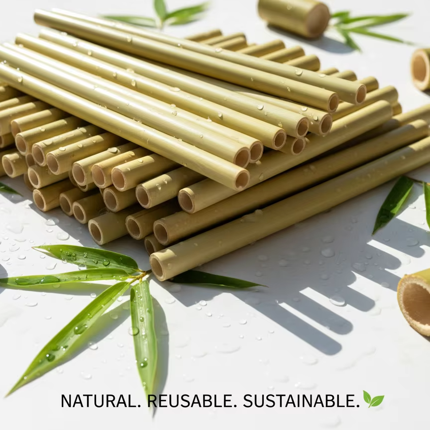 Pajitas de Bambú Biodegradables DR sin Empaque, 200mm, Duraderas, Ecológicas, Compostables, Diámetro Personalizado, Logotipo Láser, Paquete para Camping
