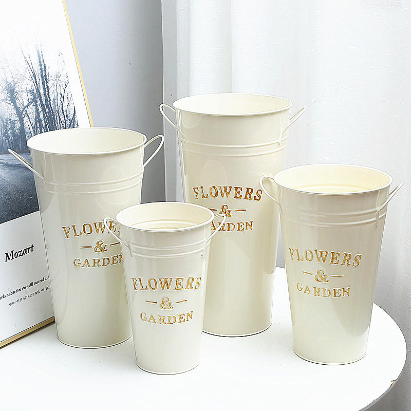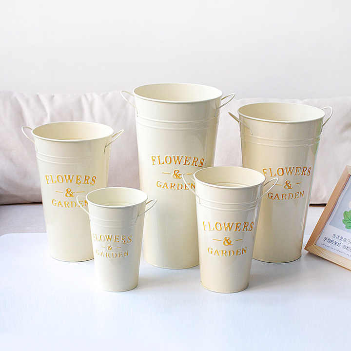DREA Rural estilo costero Retro Metal florero cubo francés cubo maceta Floral contenedor para la decoración del jardín del hogar