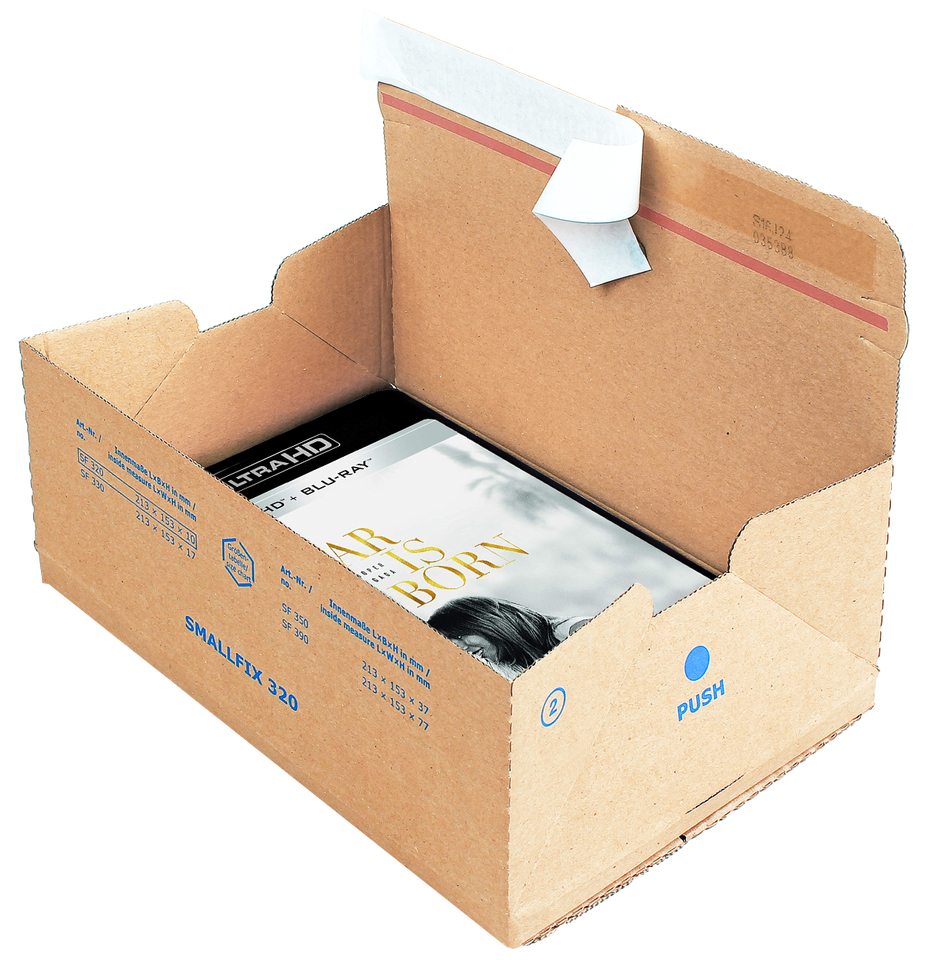Construcción robusta para el envío seguro, Disponible en varios tamaños y diseños, Fácil montaje y manejo, Cierre autoadhesivo para un embalaje rápido, Tira del rasgón para la abertura convenienteCaracterística