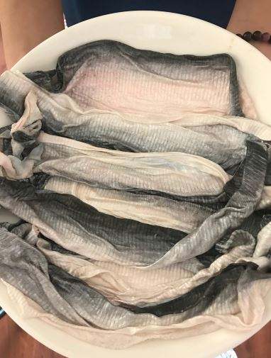 Ingredientes:Piel secada de los pescados