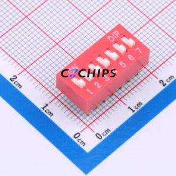 DS-07-R DIP Switch Through hole Component (THT) Switch ( Number of Switch Sections: 7 )( Lead Spacing: 2.54mm )( Color: Red )