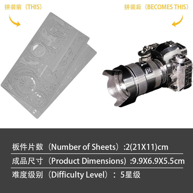 Rompecabezas 3D de Cámara DSLR - Kit de Modelo DIY de Acero Inoxidable, Réplica para Entusiastas de la Fotografía y Coleccionistas