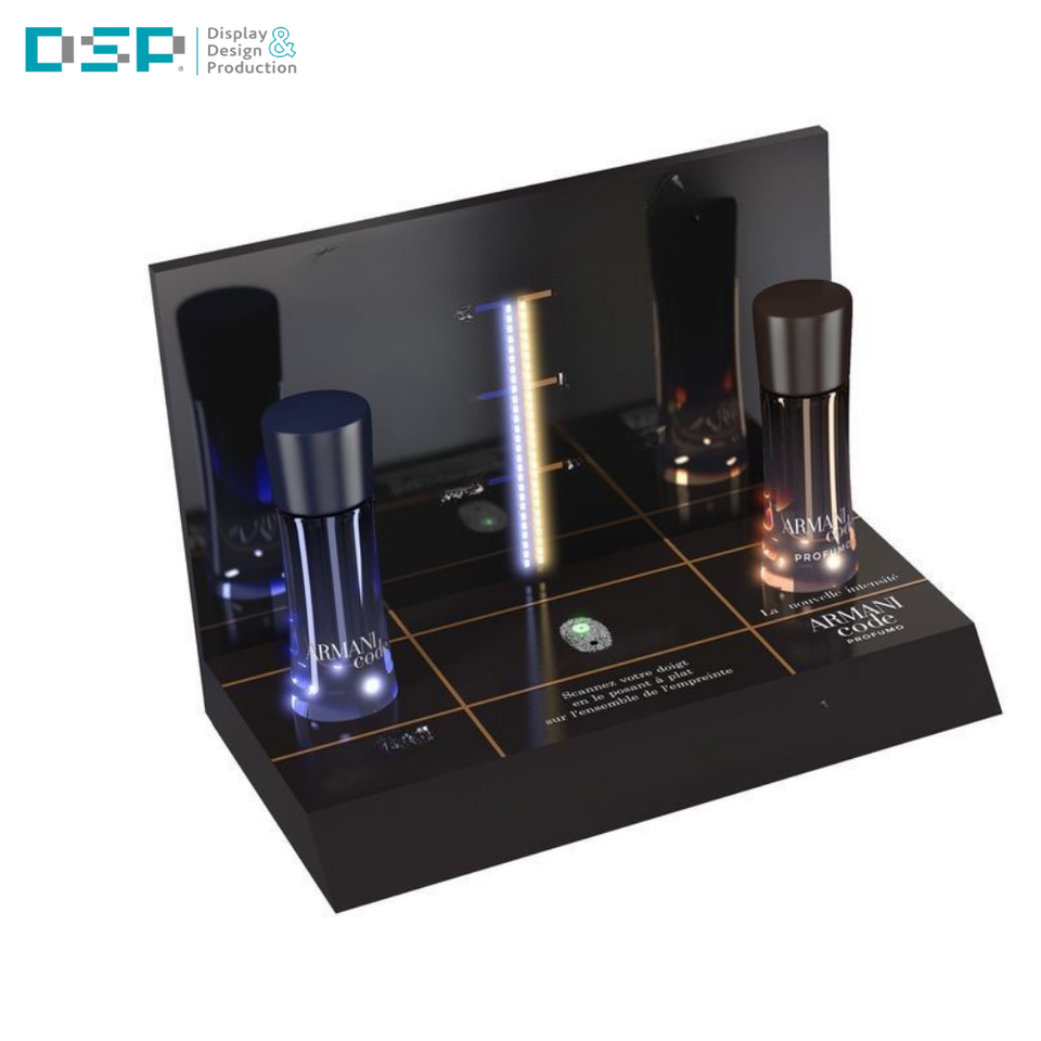 Exhibidor de Perfume Acrílico Ecológico DSP, Fabricado en Vietnam, con Luces LED, Diseño Personalizado, Montado en la Pared para Centros Comerciales