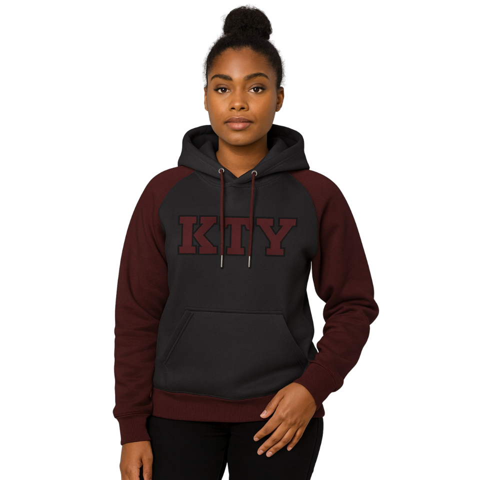 DST Delta Black Body Maroon Raglan Sleeves Pullover Sudadera con capucha Mezcla de algodón Greek Sorority Apparel Divine Nine HBCU Soror Sudadera con capucha