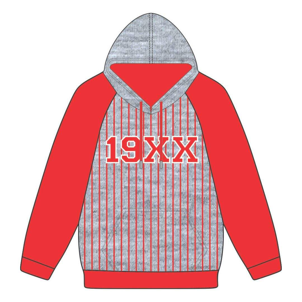 Sudadera con Capucha DST Delta Grey Body Red Raglan Pinstripes, Mezcla de Algodón, Ropa de Hermandad Griega Divine Nine