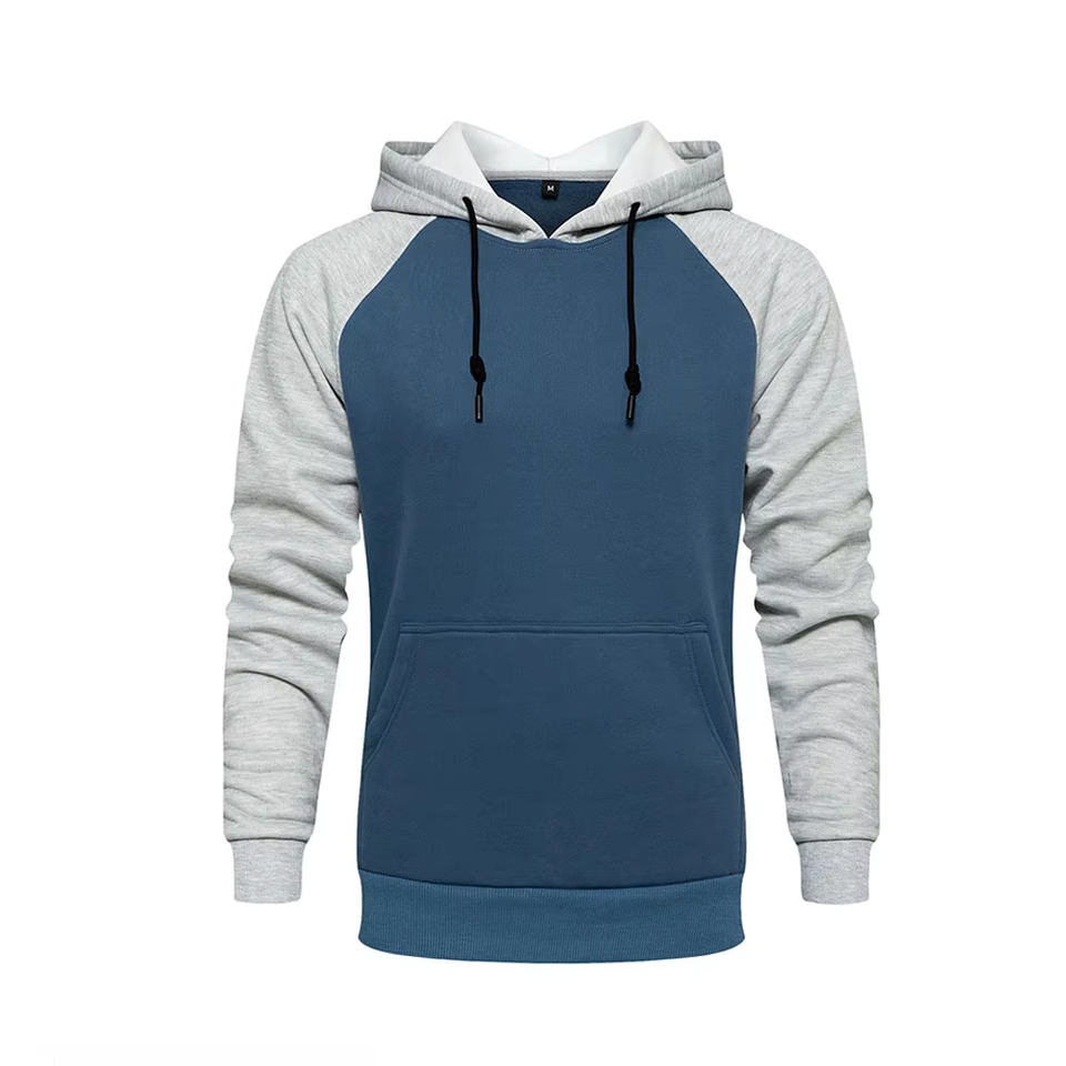 Sudadera con Capucha Raglán Azul y Gris para Hombre | Sudadera Deportiva para Rendimiento Atlético | Ropa Deportiva Personalizada al por Mayor con Etiqueta Privada