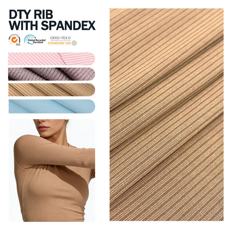 Tela de punto acanalado DTY con elastano, material de poliéster acanalado DTY sólido, duradero y cómodo para la producción de prendas de vestir