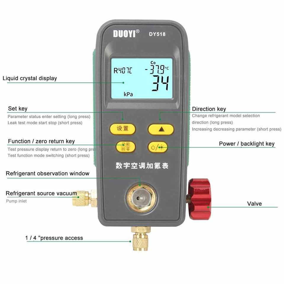 DY518 Refrigeration Pressure Gauge Vacuum Pressure Tester