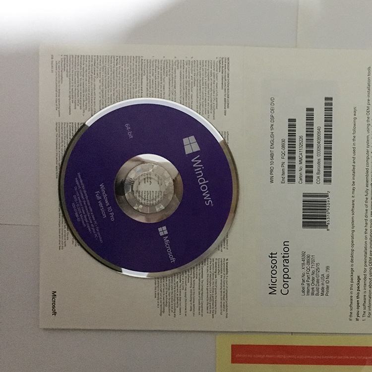 Nombre del producto:Win10 Pro 64bit OEM paquete