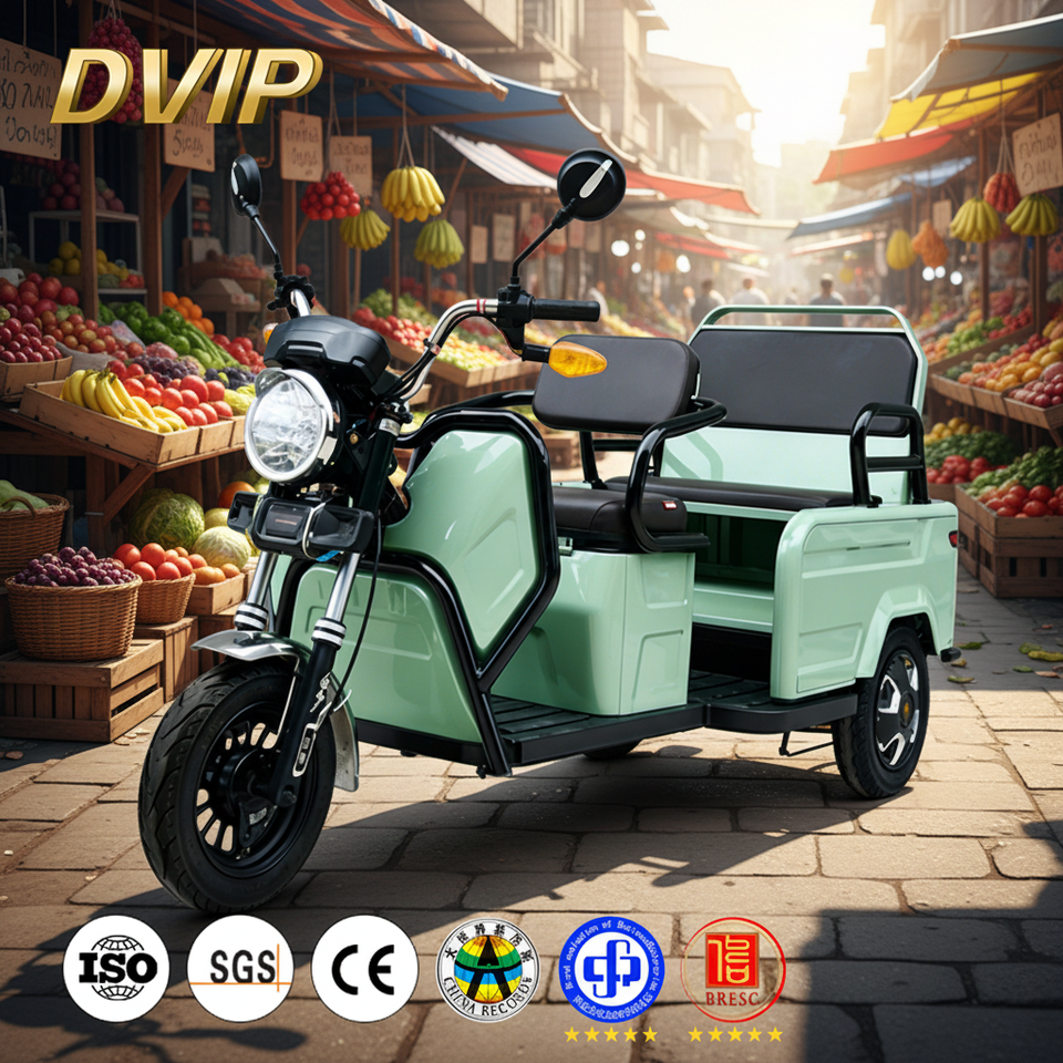 Triciclo Eléctrico DVIP de 60V, Tuk Tuk de Tres Ruedas para Adultos, Diseño Plegable, Carrocería Abierta, Uso para Pasajeros, Potencia de 251-350W, Color Personalizado
