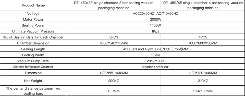 Máquina de Envasado al Vacío Automática de Mesa DZ-450 3E con 3 Barras de Sellado de 450 mm y 850 mm, Selladora de Bolsas con Calentamiento Instantáneo