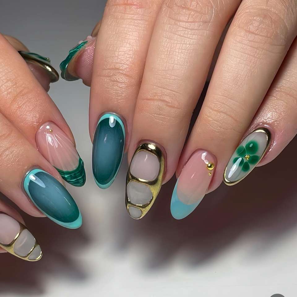 Uñas Postizas de ABS con Forma de Almendra, Diseño Francés con Lazo, Aplicación con Pegamento, Uñas Artificiales