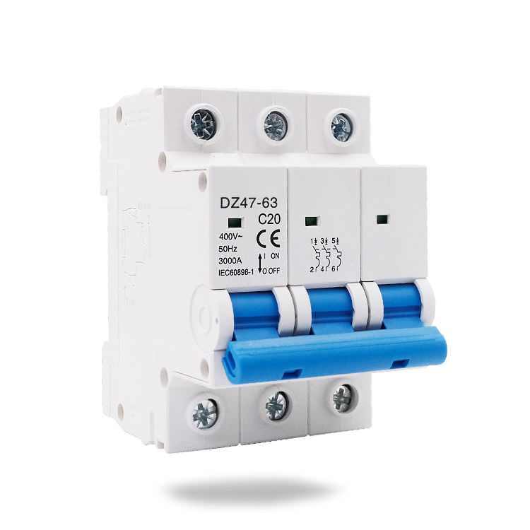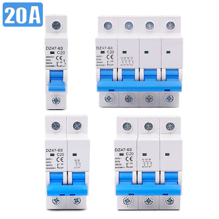 Protector de sobrecarga corta en miniatura MCB1/2/3/4 20A polos, montaje en riel Din, capacidad de ruptura, tipo C, Mini disyuntor, 1/2/polos