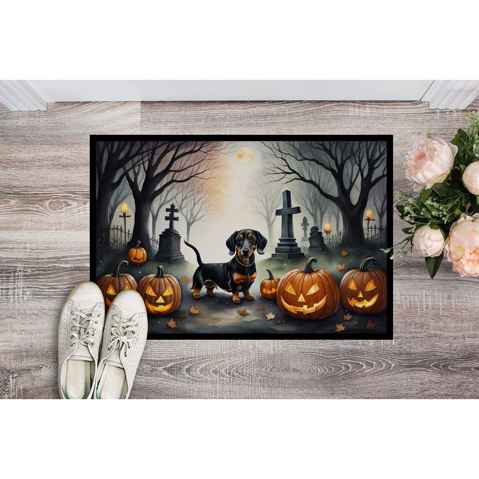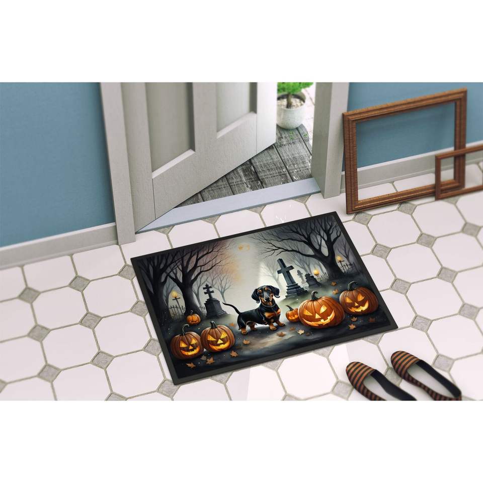 Felpudo Dachshund Spooky Halloween antideslizante lavable pila baja 24H X 36W alfombra de entrada interior y exterior para puerta delantera