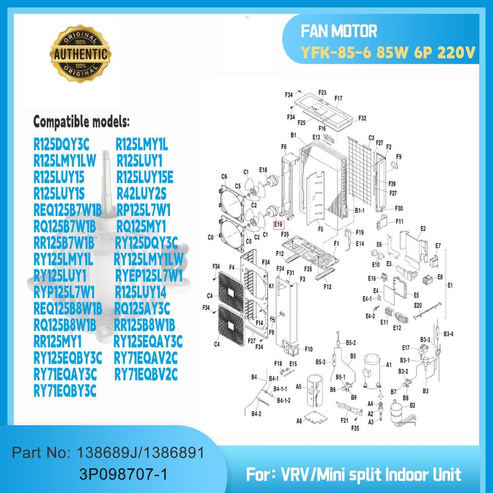 Motor de Ventilador DC para Unidad Exterior Daikin VRV YFK-85-6 DC220V 85W 3P098707-1, Repuesto OEM para Piezas de Aire Acondicionado Comercial HVAC