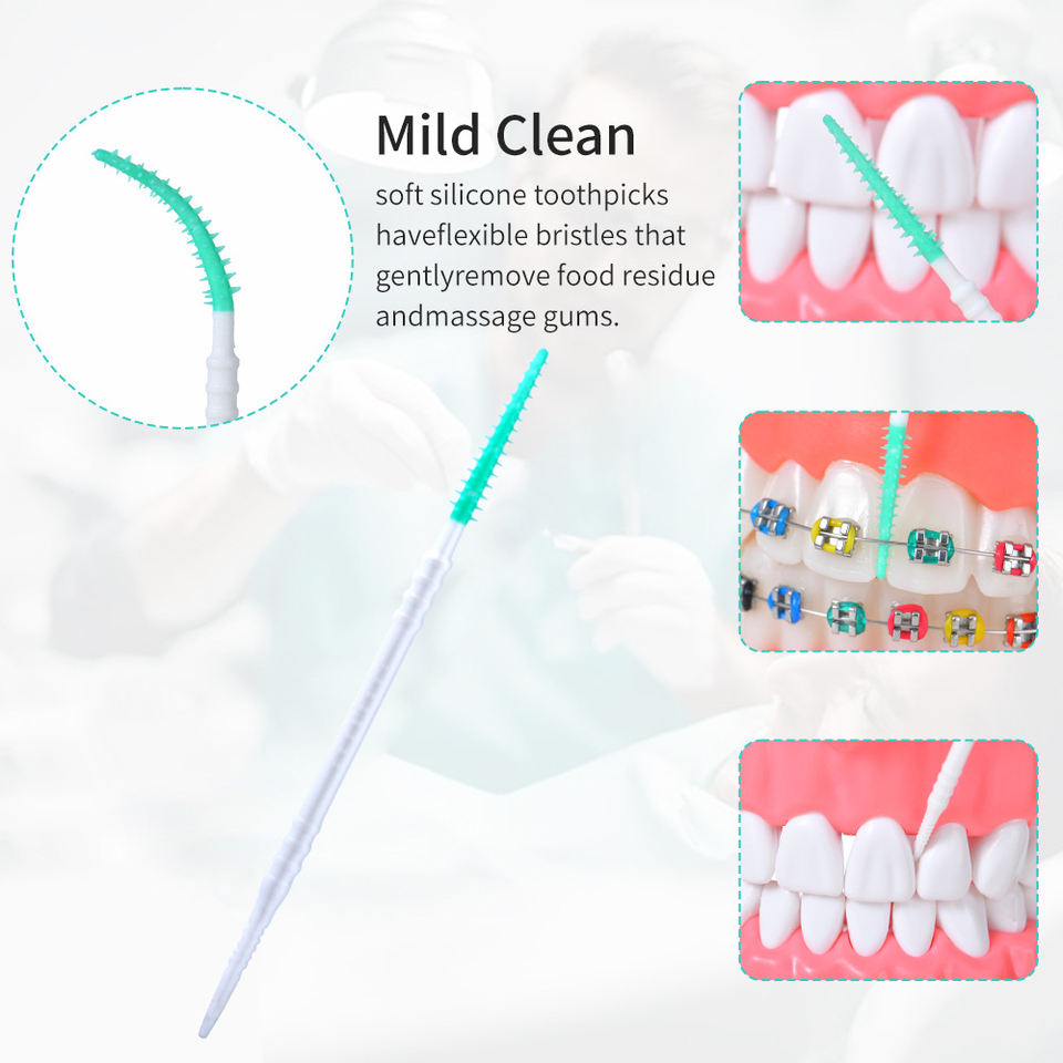 Cuidado diario superventas logotipo personalizado palillo de dientes de plástico flexible cuidado dental suave de goma de silicona palillos dentales para limpieza de encías