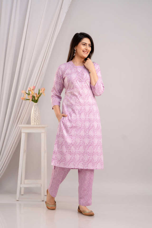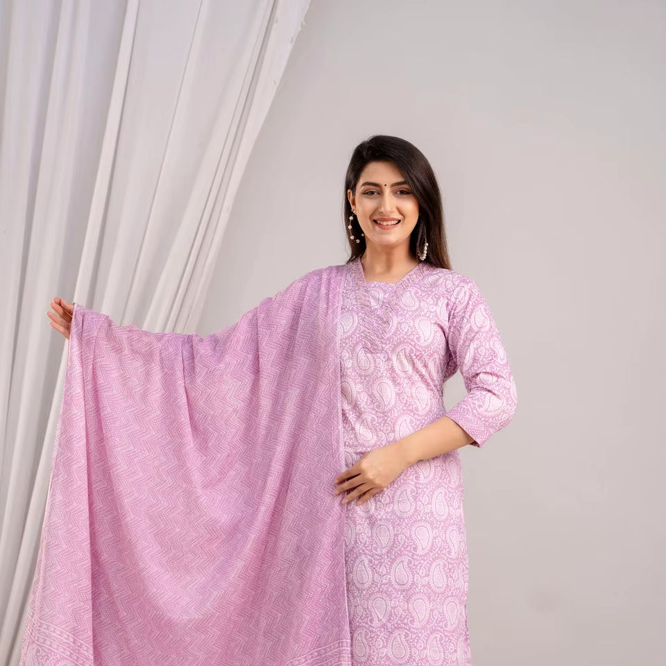 Conjunto de Kurta de Algodón Puro con Estampado Floral Étnico para Mujer, para Uso Diario, Casual o de Fiesta, con Pantalones y Dupatta