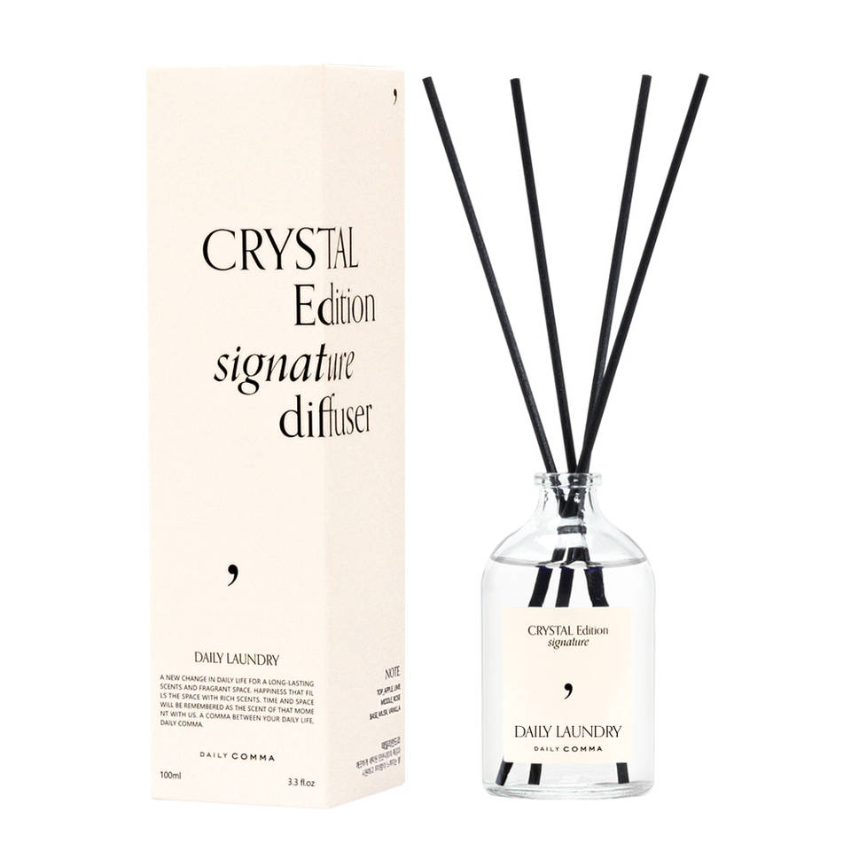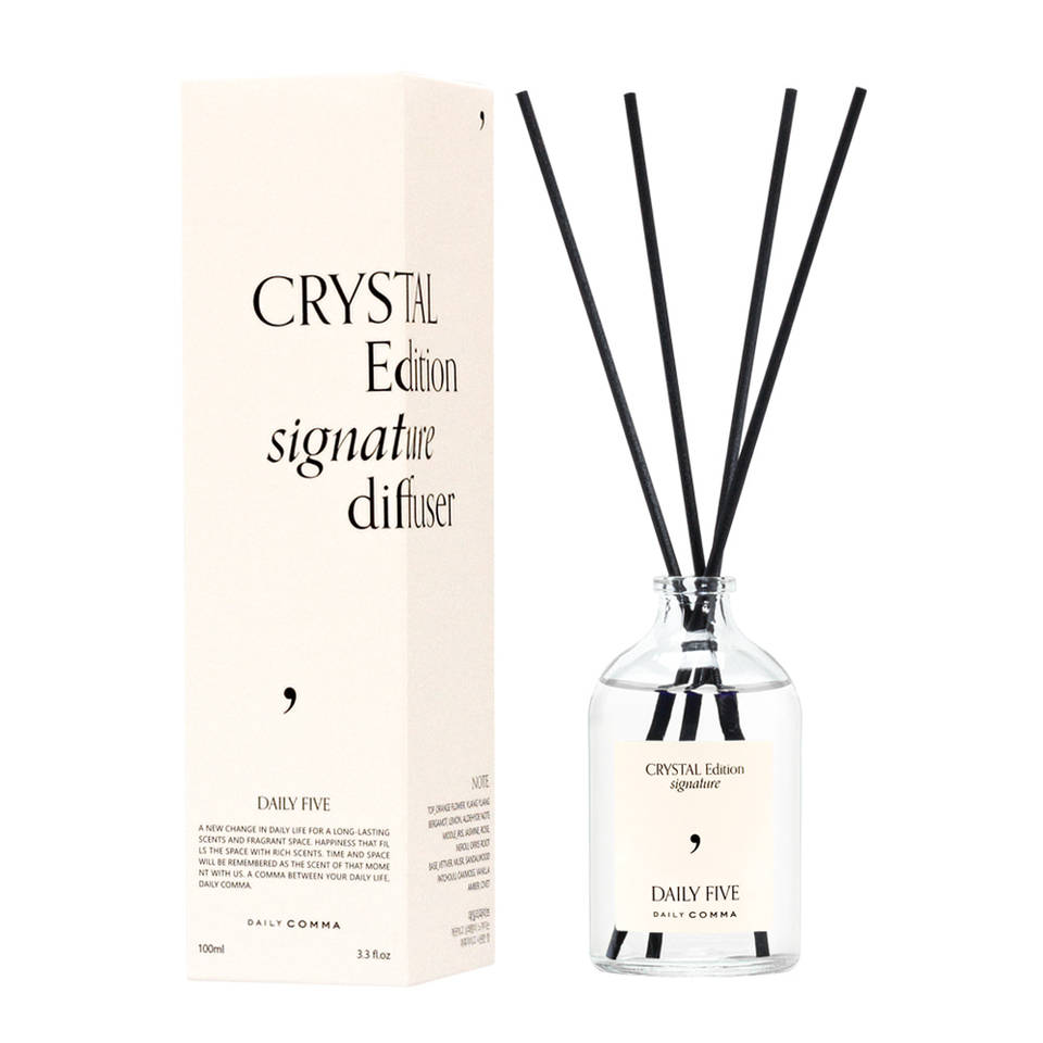 Difusor de Aroma Daily Comma Crystal Edition 100ml, Sin Parabenos, Aroma Duradero de 6 Meses, Difusor de Cilindro con Varillas para Interiores