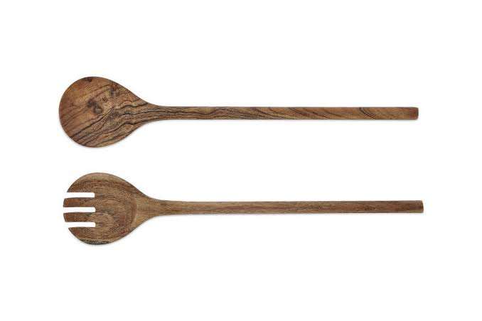 Vajilla de uso diario, vajilla multicolor de madera de acacia, mango personalizado, cuchara y tenedor, juego de servidores de ensalada de madera de acacia/mango