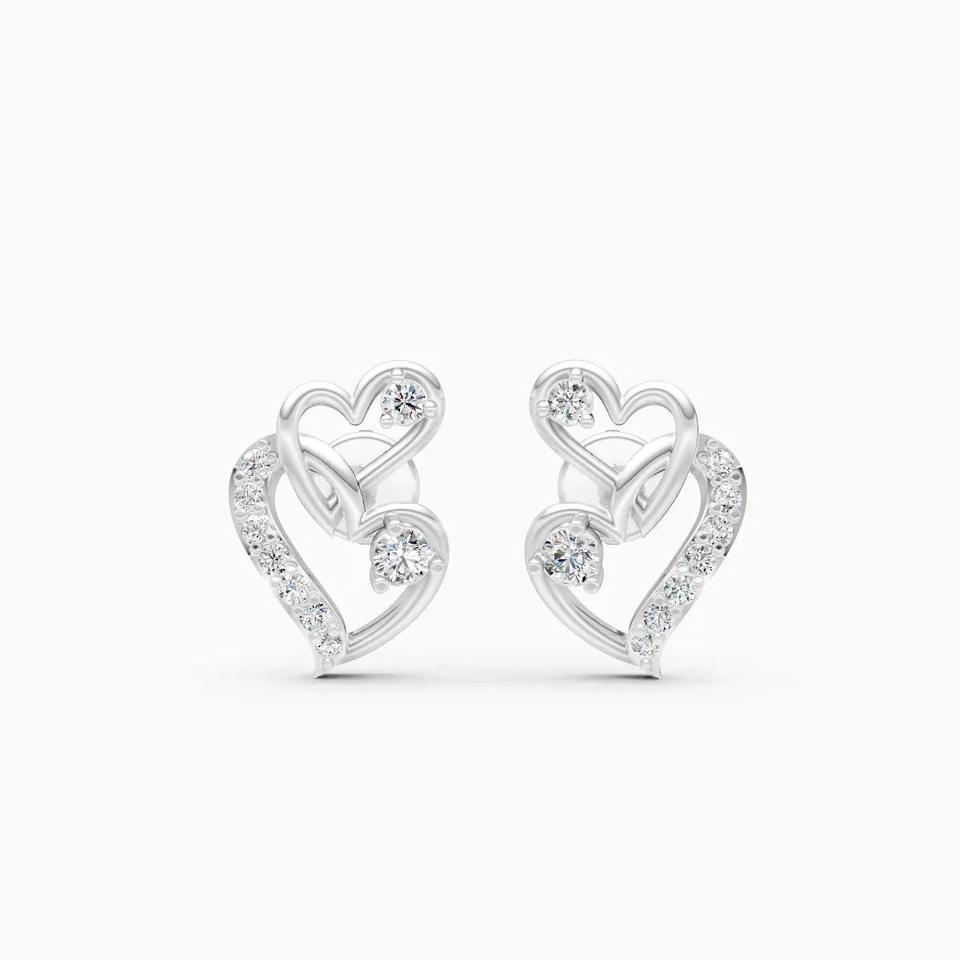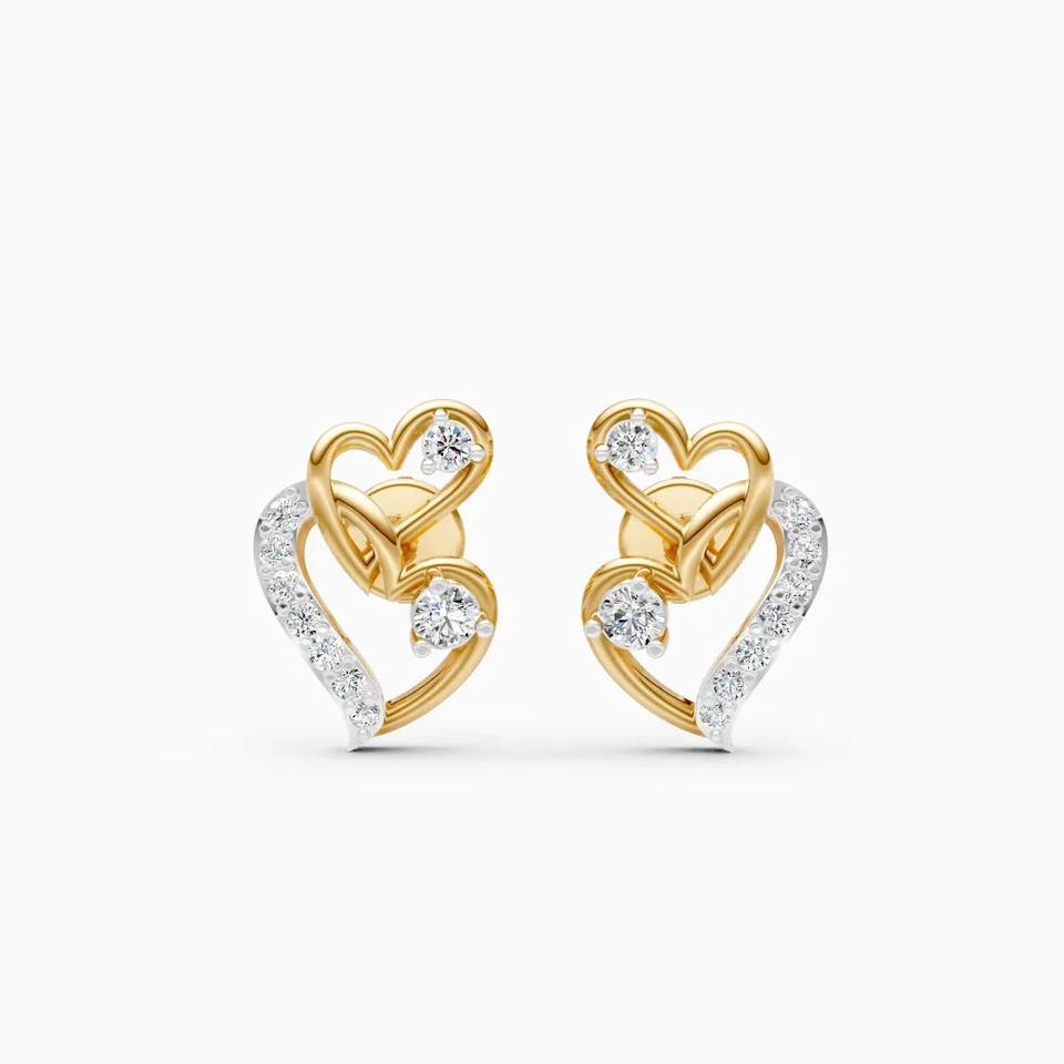 Pendientes de Doble Corazón con Diamantes Cultivados en Laboratorio para Uso Diario, 0.212 Ct, en Oro Amarillo, Blanco y Rosa de 9K