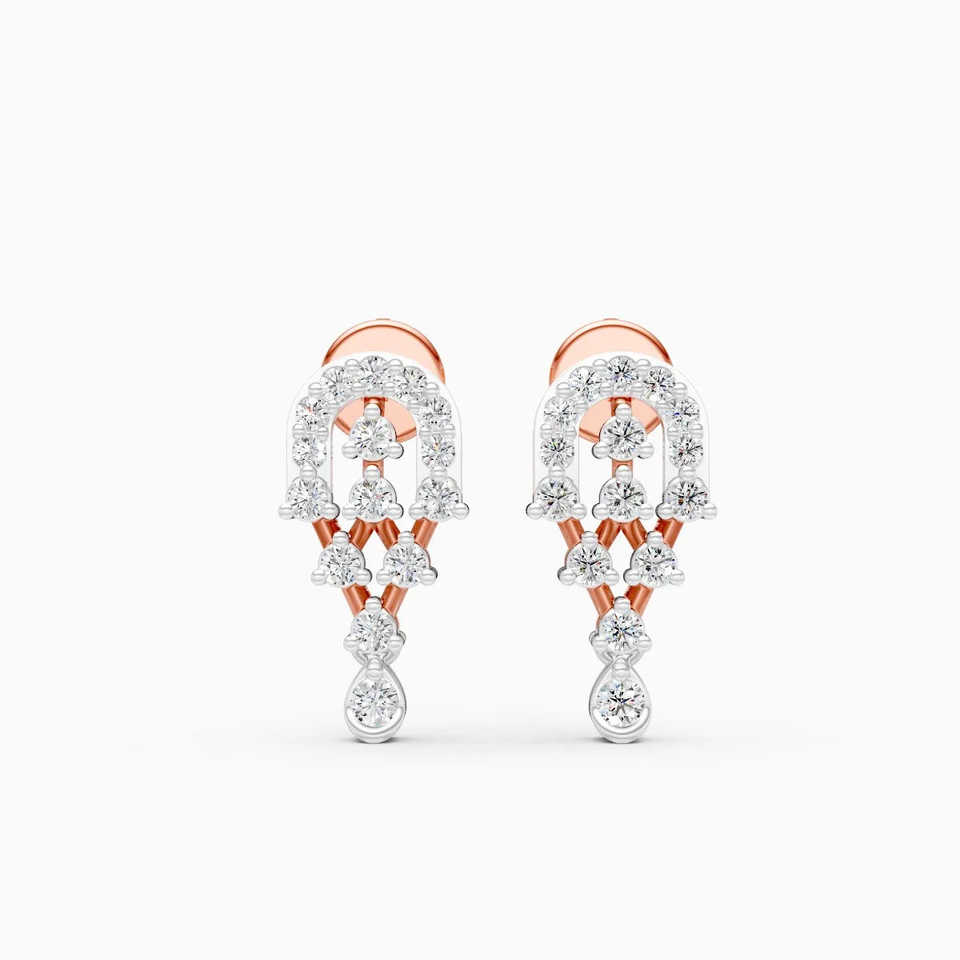 Pendientes Redondos de Diamantes Cultivados en Laboratorio para Uso Diario, Dos Tonos, 0.34 Ct, en Oro Amarillo, Blanco y Rosa de 9K