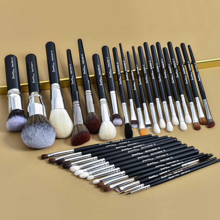Juego de Brochas de Maquillaje Profesional de Lujo DailyQueen, 30 Piezas, Pelo Natural de Cabra Morph, Logotipo Privado Personalizado, Negro, Academia, Uso Diario