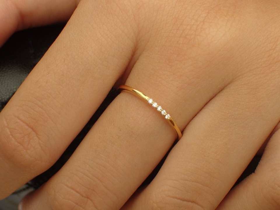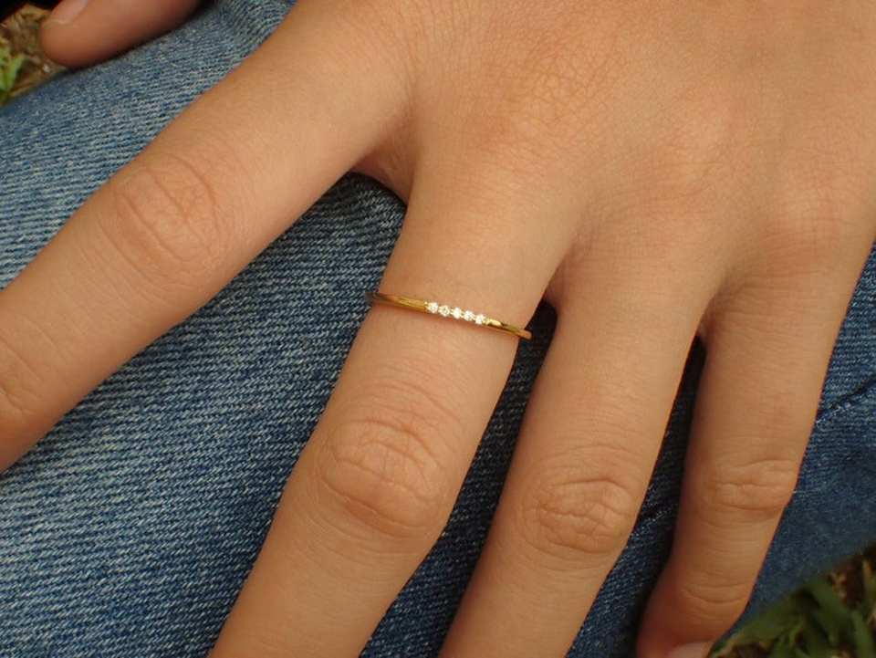 Anillo delicado de 5 diamantes en oro sólido de 14K, regalo encantador para ella, anillo apilable delicado, anillo de diamantes fino para mujer