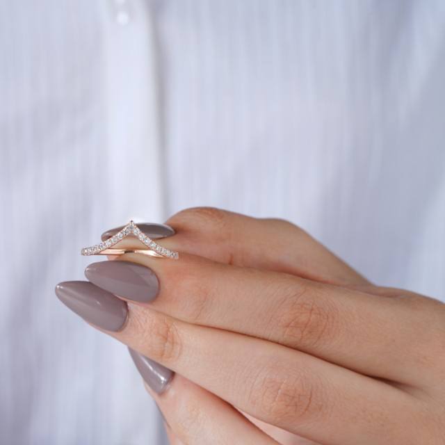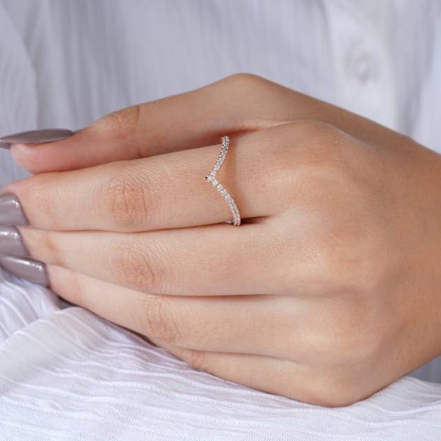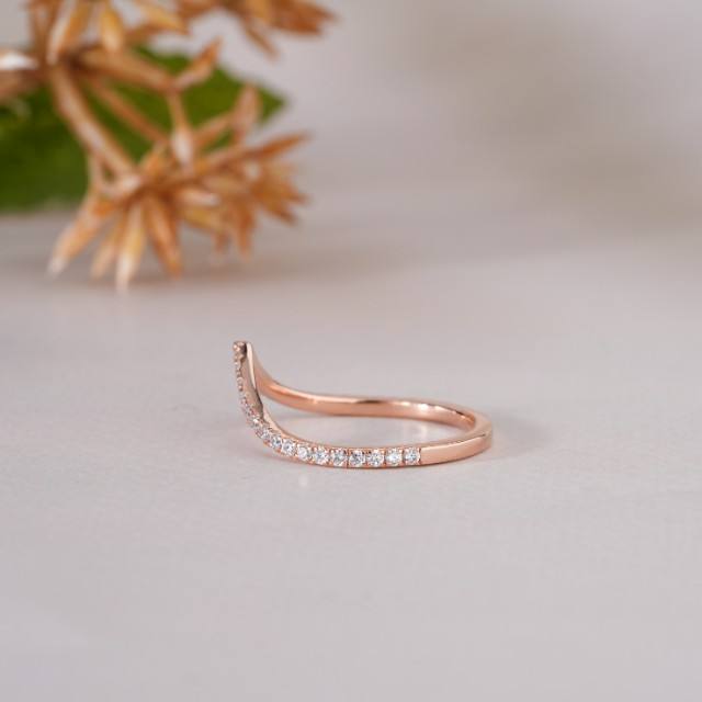 Anillo Apilable Delicado con Diseño de Chevron Curvo para Mujer, Brillante en Forma de V, Regalo para Ella, Elegante Anillo de Boda de Moissanita en Oro Rosa