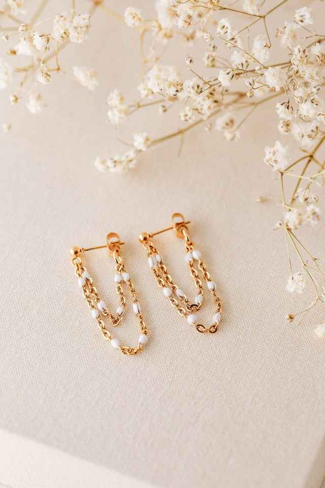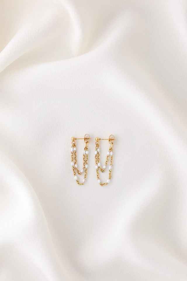 Palabra clave:Pendientes de doble cadena de perlas