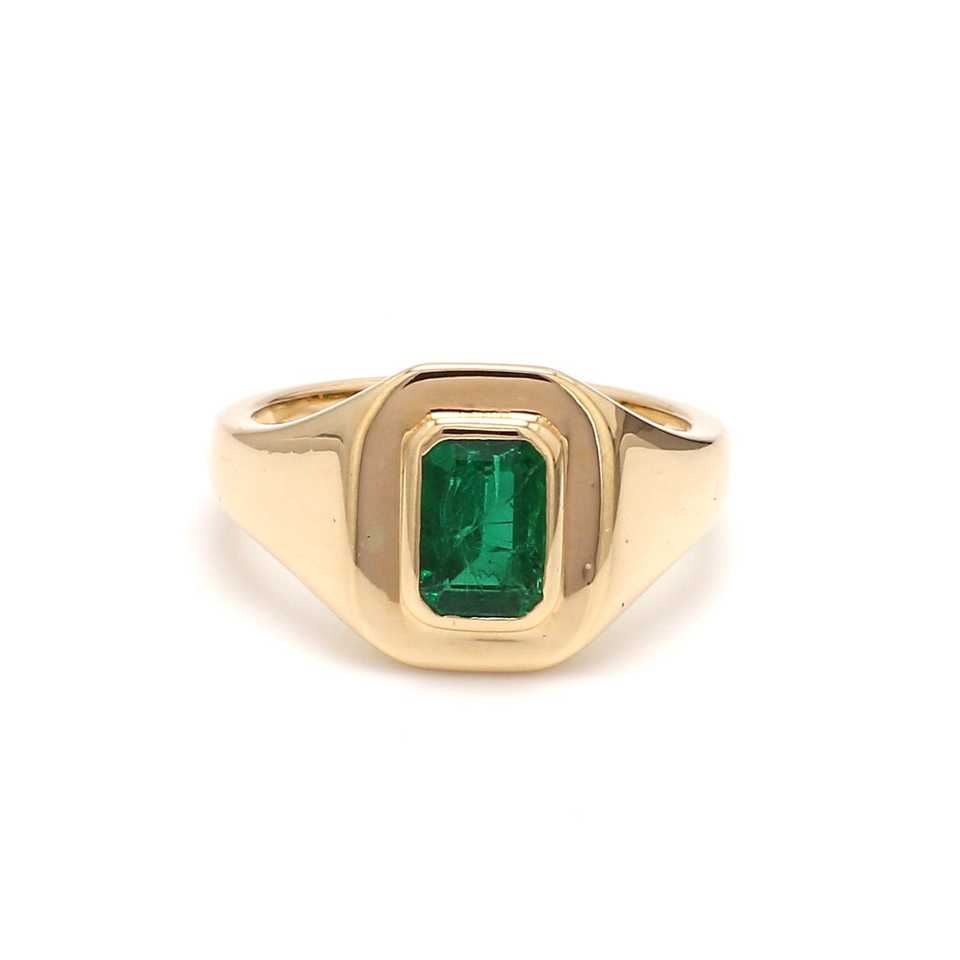 Anillo de Oro Sólido de 14k con Esmeralda Natural de Corte Octogonal, Joyería de Oro Puro, Anillos de Lujo Hechos a Mano con Engaste de Bisel, Venta al por Mayor