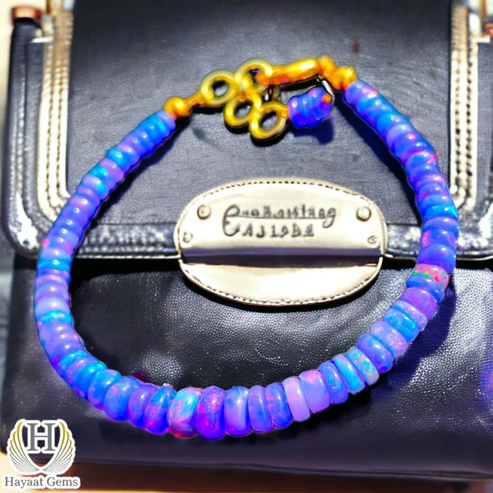 Pulsera de ópalo etíope de lavanda delicada, Plata de ley de fuego púrpura genuina, cuentas lisas certificadas por terceros hechas a mano