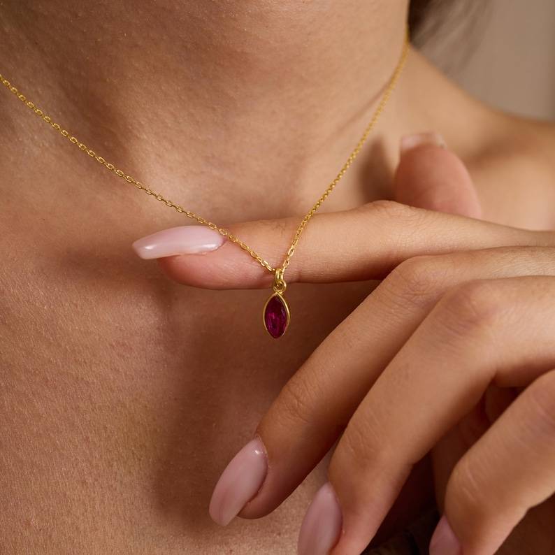 Conjunto de Joyería Delicado con Rubíes en Forma de Marquesa, Plata de Ley 925, Chapado en Oro de 14K, Collar y Aretes, Regalo para Mujer, Compromiso, Aniversario