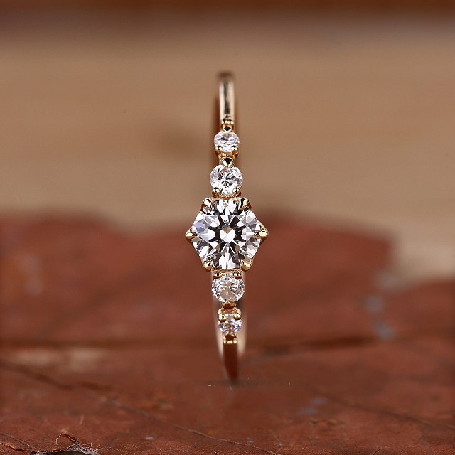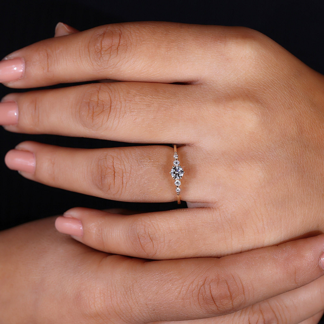 Anillo de Compromiso con Diamante Cultivado en Laboratorio, Corte Redondo y Delicado, Engastado en Garras, en Oro Amarillo para Mujer