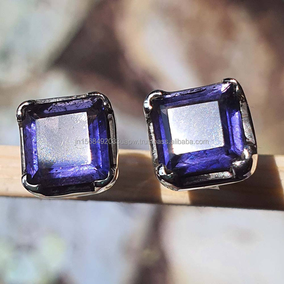 Product Name:Natural Iolite 925 Sterling Silver Stud Earrings