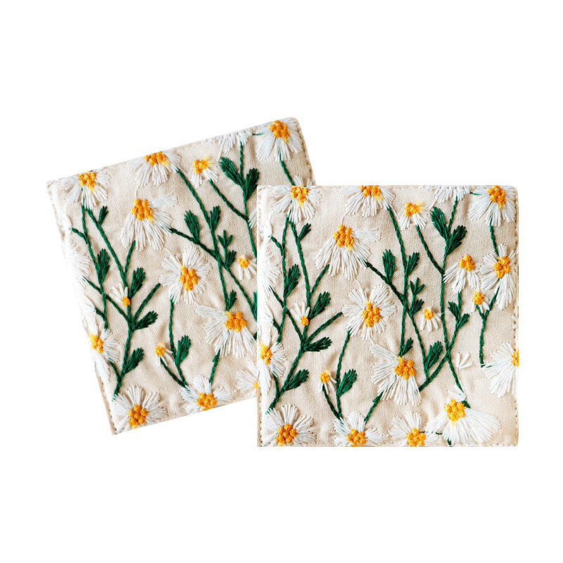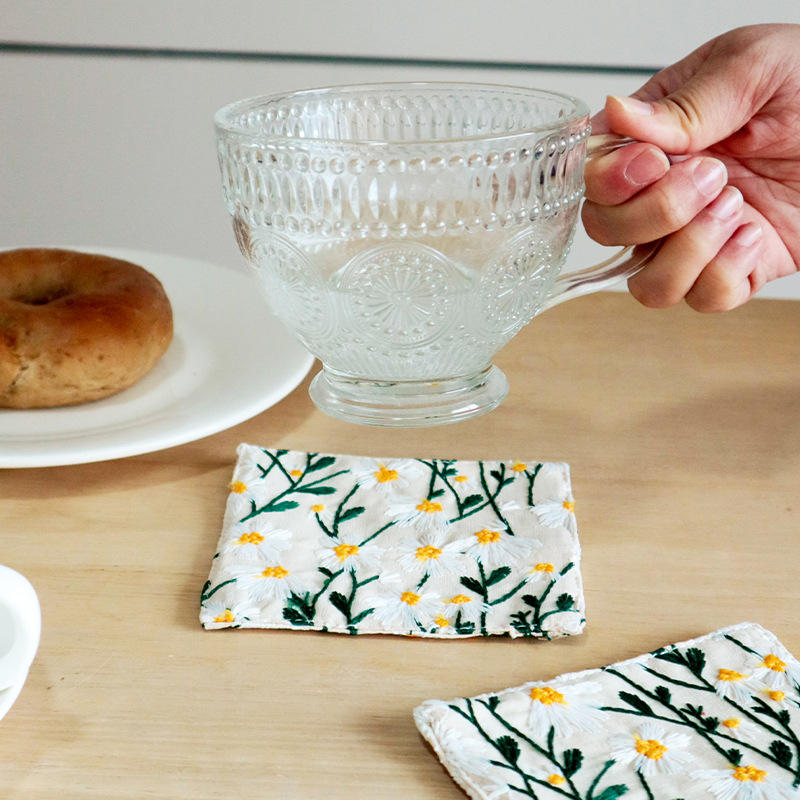 Posavasos Rectangular de Lino y Algodón con Bordado de Margaritas, Aislante del Calor, para Tazas de Té