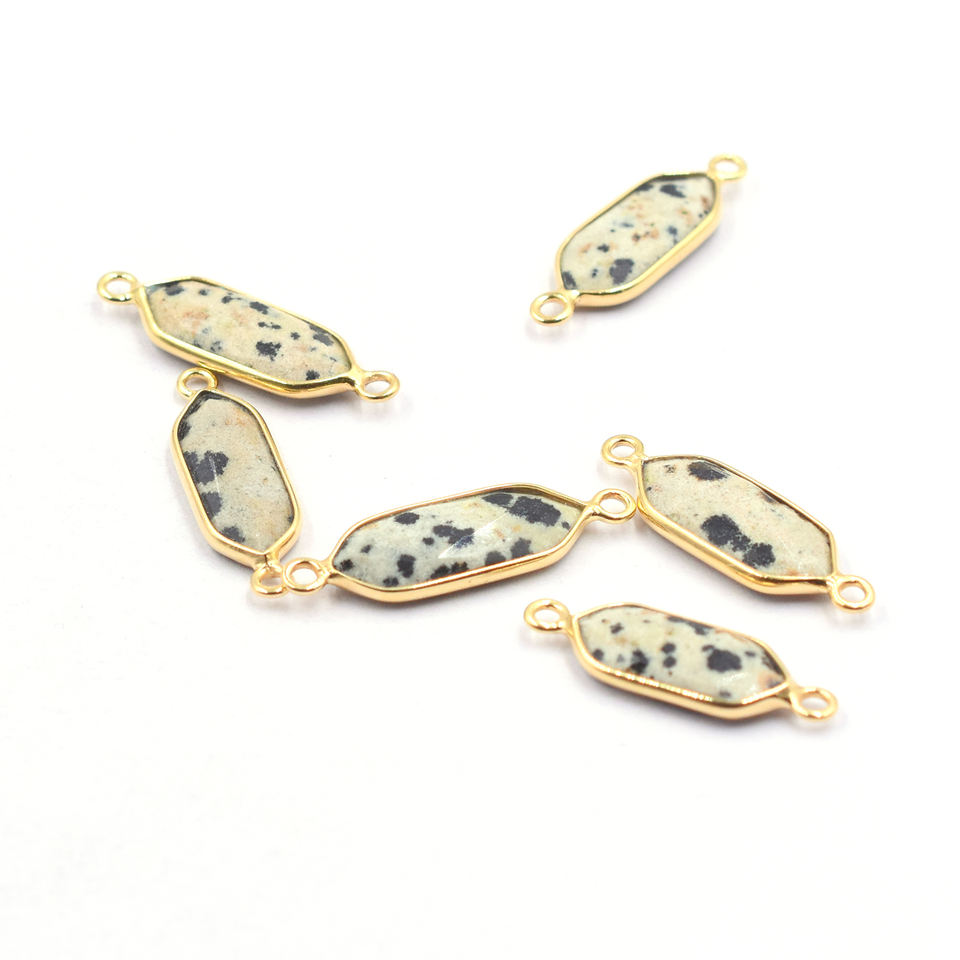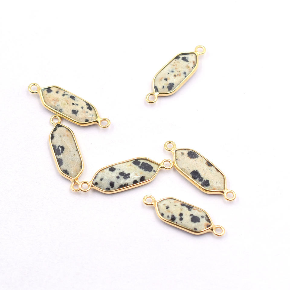 Product Name:Dalmatian Jasper Hexagon Shape Silver Bezel Gold Plated Connector