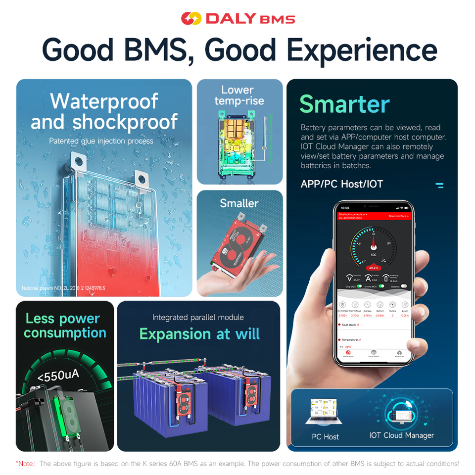 Daly Smart BMS Li-ion 6S 24V 60A BMS Paralelo para Batería de Iones de Litio NMC NCM 3.7V 18650 BMS Impermeable 6S Daly