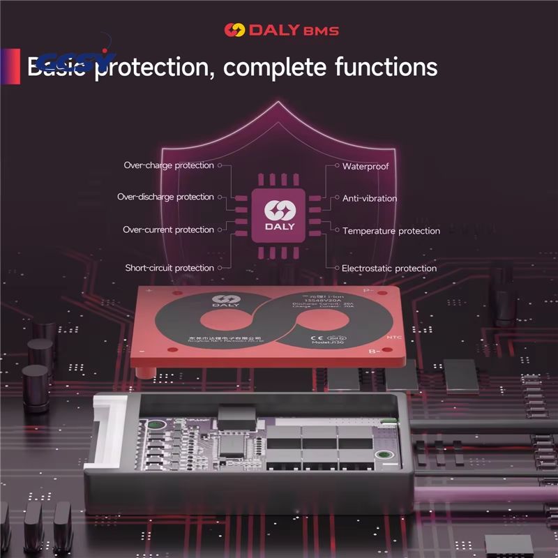 Daly para Baterías de Iones de Litio de 3.7V para Bicicletas Eléctricas, Sistema de Gestión de Baterías BMS de 10S 36V 15A para Paquetes de Baterías de Iones de Litio de 36 Voltios