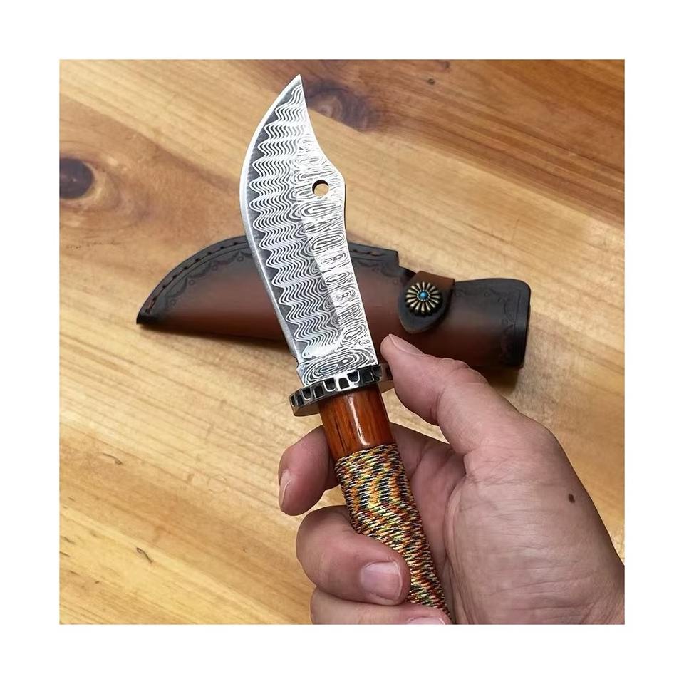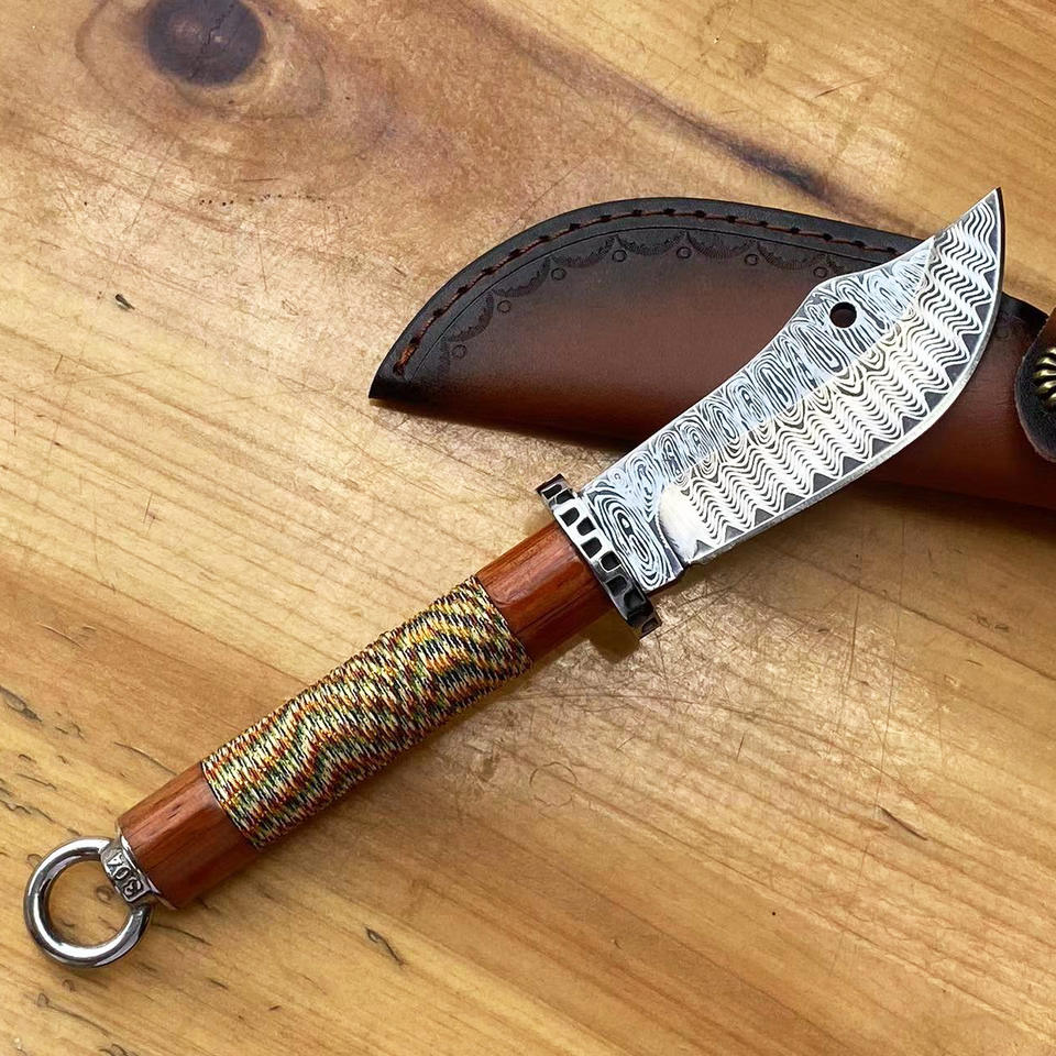 Colgante Decorativo con Patrón de Damasco para Calmar y Proteger la Casa, Cuchillo de Hoja Fija Guangong con Funda de Cuero