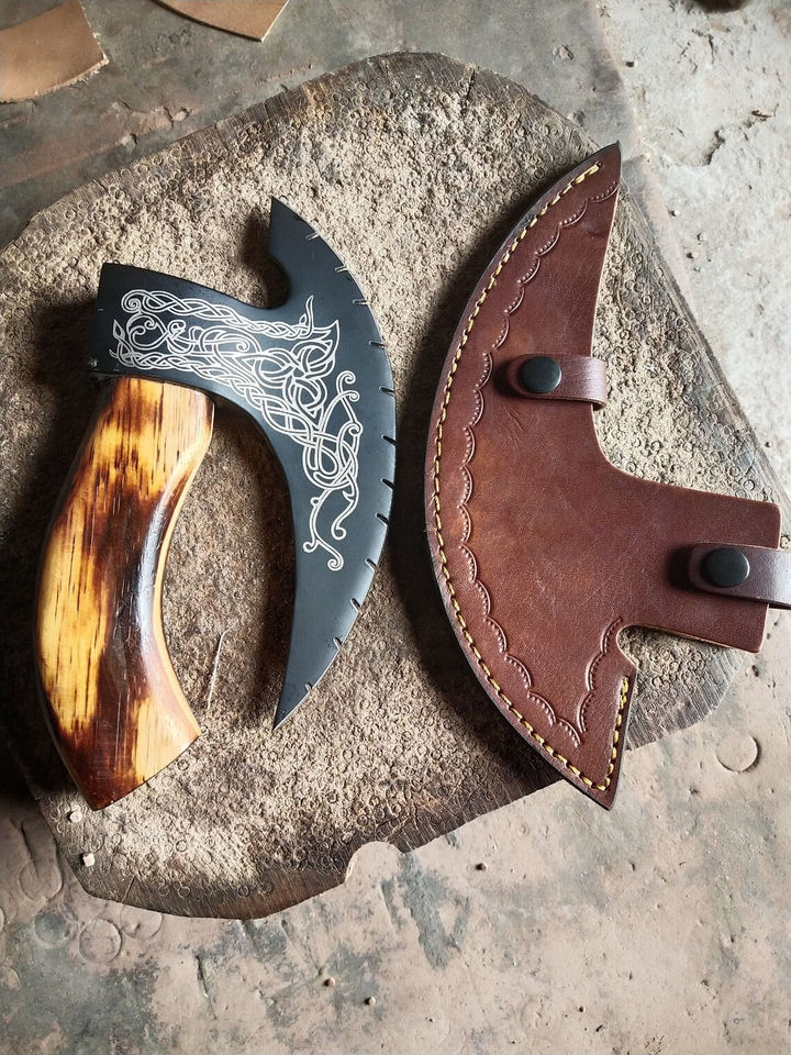 Cortador de Pizza de acero inoxidable hecho a mano personalizable de acero de Damasco, el mejor Hotel usado, diseño vikingo grabado, herramientas de Pizza, servicio ODM